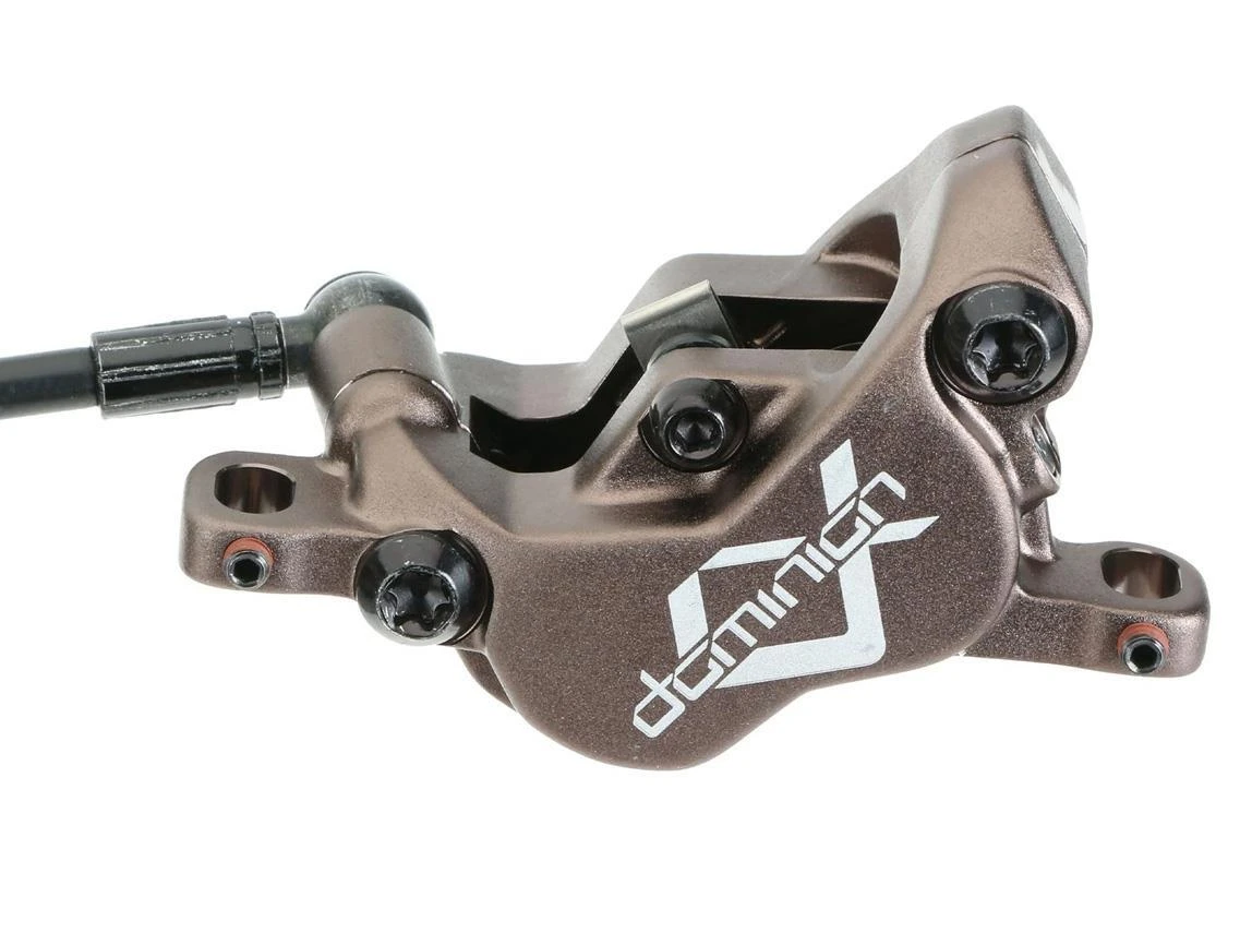 Dominion’s master cylinder is factory tuned for the shortest dead stroke possible and a crisp bite point. The Dominion A4 caliper utilizes four pistons in the most structurally rigid design possible. It features a cold-forged caliper and KingPin structural pad retention bolt that increases stiffness.