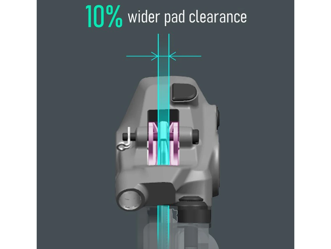 Increased Pad Spacing – A 10 % increase in brake pad spacing also allows for a significant reduction in noise during braking. In addition, when the RT-MT900 brake disc rotor (sold separately) is used, its deformation-resistant design, even with increasing heat, helps to create an extremely quiet and smooth braking system.