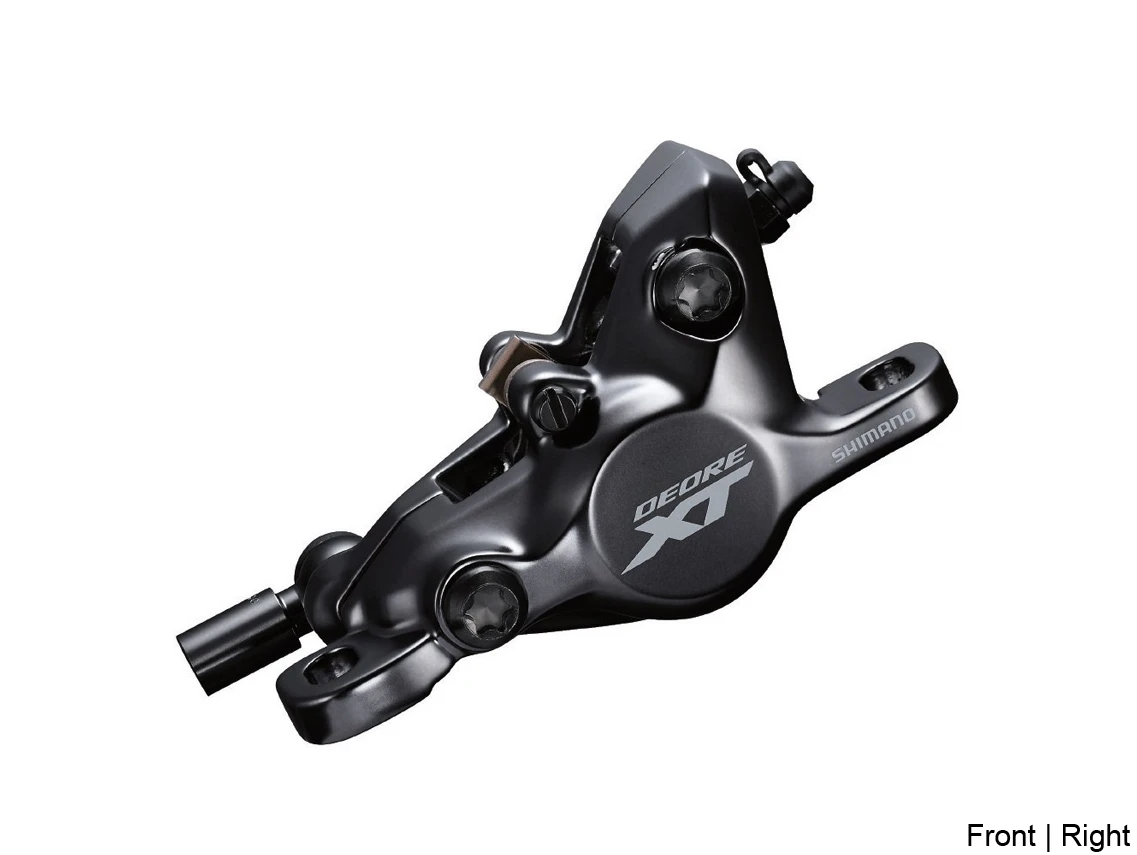 The Shimano Deore XT BR-M8100 Postmount brake caliper is with its 2-piston construction perfect for Cross Country use. Compared to its predecessor a quicker piston retraction leads to superior modulation what results in an improved braking control. The G03A Resin brake pads in combination with the light 2-piston caliper guarantee extremely good deceleration and low weight at the same time.