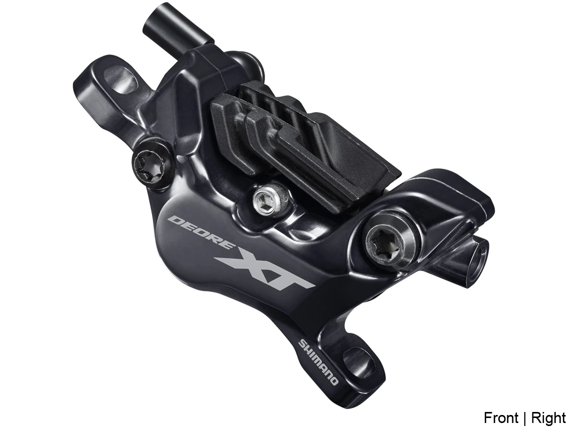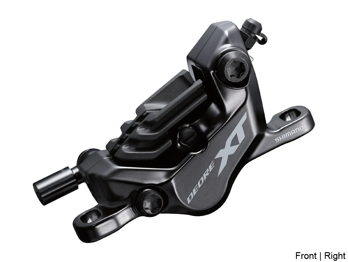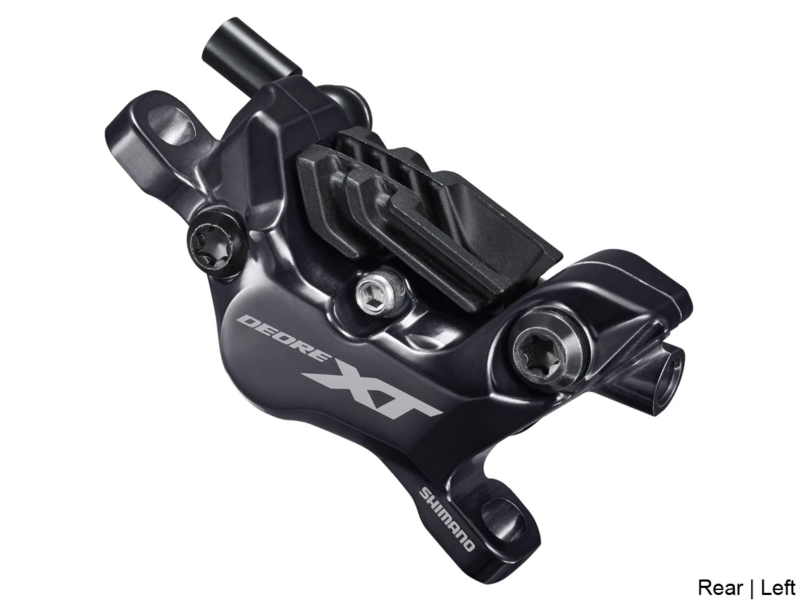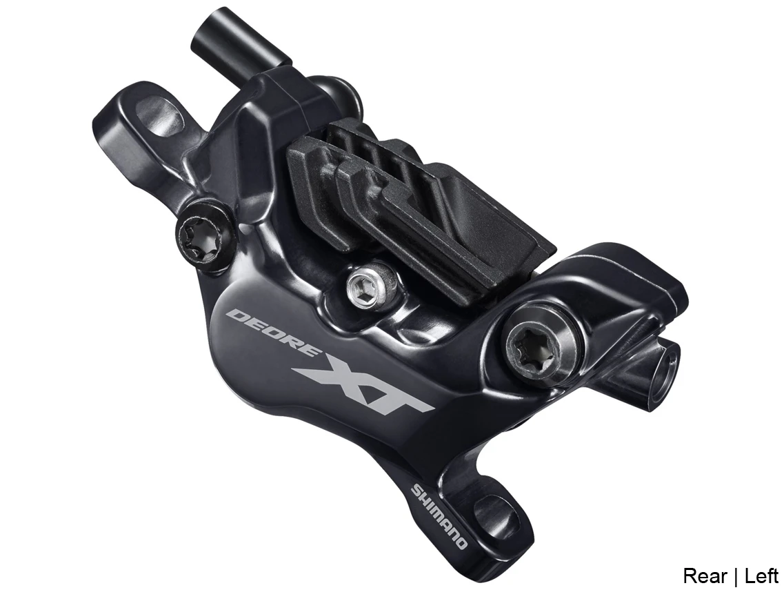 The Shimano Deore XT BR-M8120 Postmount brake caliper is with its 4-piston construction perfect for Trail and Enduro use. Compared to its predecessor a quicker piston retraction leads to superior modulation what results in an improved braking control. The N03A Resin or N04C Metal brake pads with Ice-Tech cooling fins in combination with the powerful 4-piston caliper guarantee extremely good deceleration. In addition, the design with 4 pistons reduces disc brake rotor wobbling noise and increases the braking power by 10 % compared to the BR-M8020 caliper.